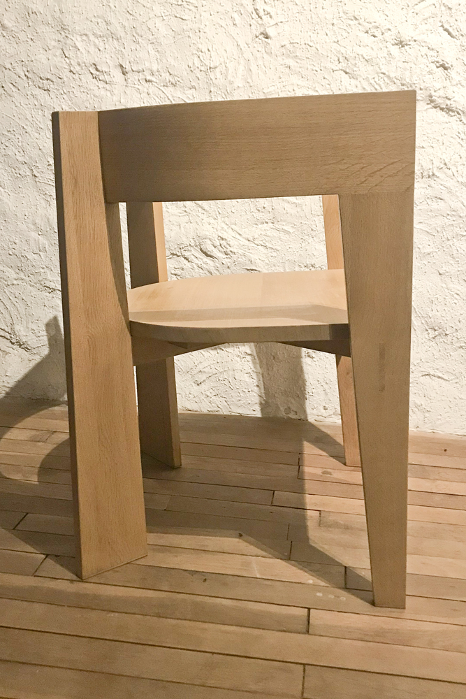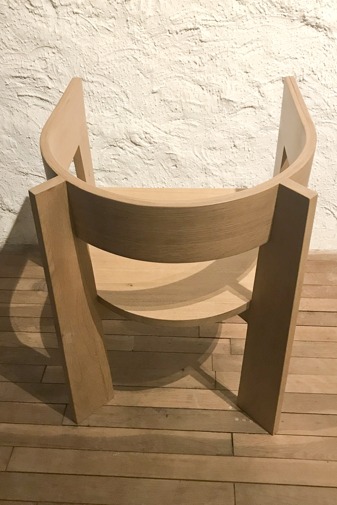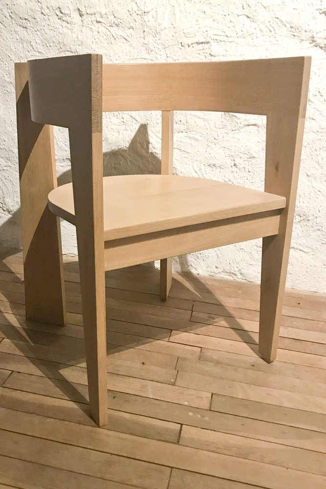 Fauteuil en chêne réalisé à la main en lamellé collé et bois massif. Venir incolore satiné.